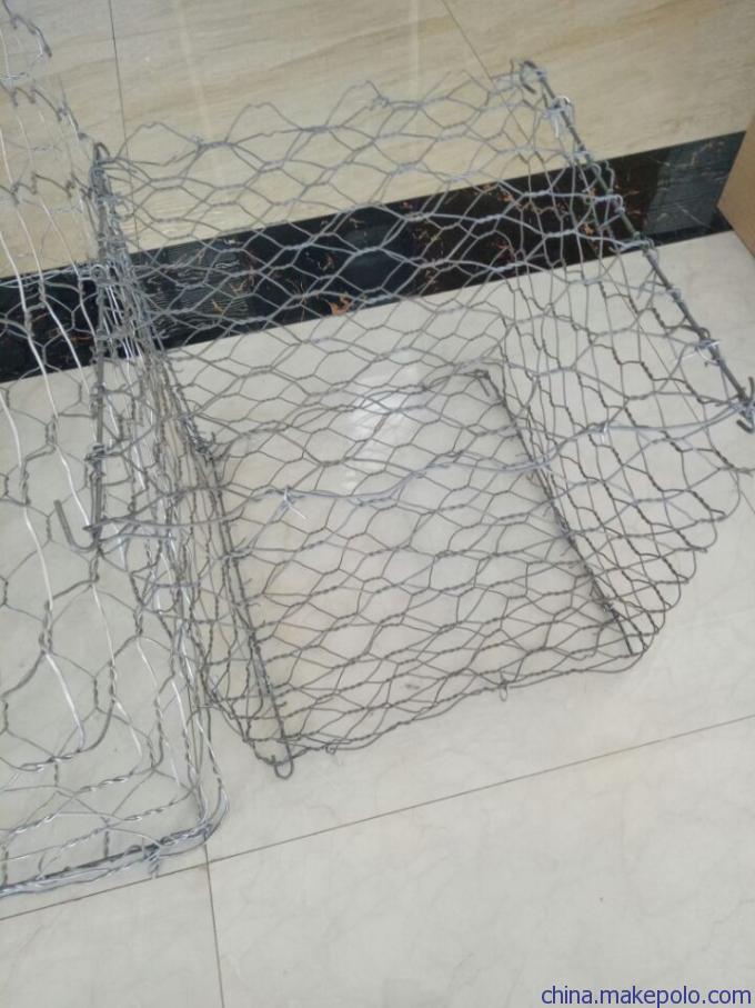 .网箱 它是由重型六角网剪裁、折叠加工而成的铁丝网箱笼,一般由4片重型六角网折叠组装成的网箱,一片大的六角网折叠成长方体的4个大面,两头有两小片的六角网,中间有隔板网片。