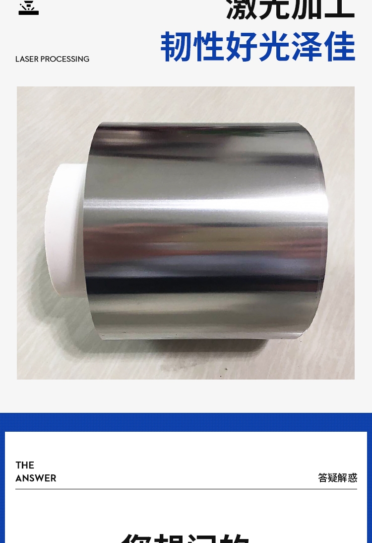 应用领域 发条、精密电子、电脑连接器、汽车零部件、照相机零件、空调压力开关膜、电子电器、五金冲压件、弹簧弹片、垫膜片、精密零部件、手机配件、波纹管、密封件、蚀刻件、光电护览、温控器,汽车膨胀阀膜片,空压机弹片,注射针头,活塞环膨胀圈,汽缸垫,弹性发条,钮扣电池,电脑手机配件,冲压件及其它连接件。可为客服免费分条,缩短时间,节约成本,获得竞争优势!