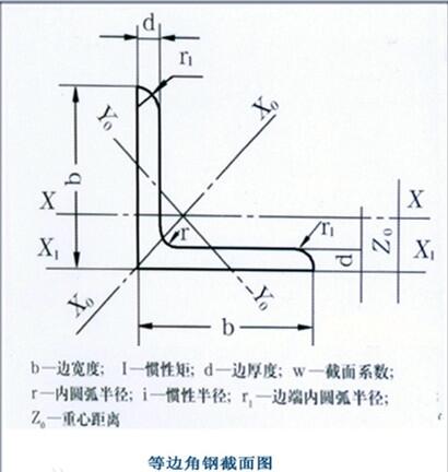角钢--分等边角钢和不等边角钢两种。角钢的规格用边长和边厚的尺寸表示。通常生产的角钢规格是2-20号,即边长的厘米数。如5号等边角钢即指边长为5cm(50mm)的角钢。同一号角钢常有2-7种不同的边厚。