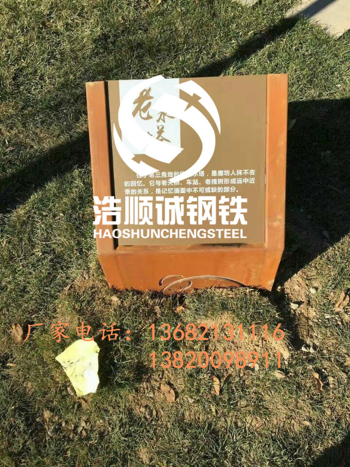 浩顺诚公司独有的锈处理催化方案,其原理是通过一系列的物理和化学工艺,催化锈红氧化膜的形成,在室外温度摄氏25度的环境下,一般三小时内完成锈处理工艺,形成的氧化膜稳定,颜色厚度均匀,不容易被擦落锈层,且不带腐蚀,不会影响后期表面锈层的继续形成,环保无害,不影响植物的生长。不影响有限材料与周围植物的相互“共生”,体现可持续的设计观。锈处理催化方案下,产生的表面粗糙有手感,使其构筑物更富体积感和质量感,升华视觉效果和感官效果,迅速升华园林设计的效果,提升经济效益和艺术效益!跟普通钢板形成的疏松、一层一层容易掉落的锈层有天壤之别!!