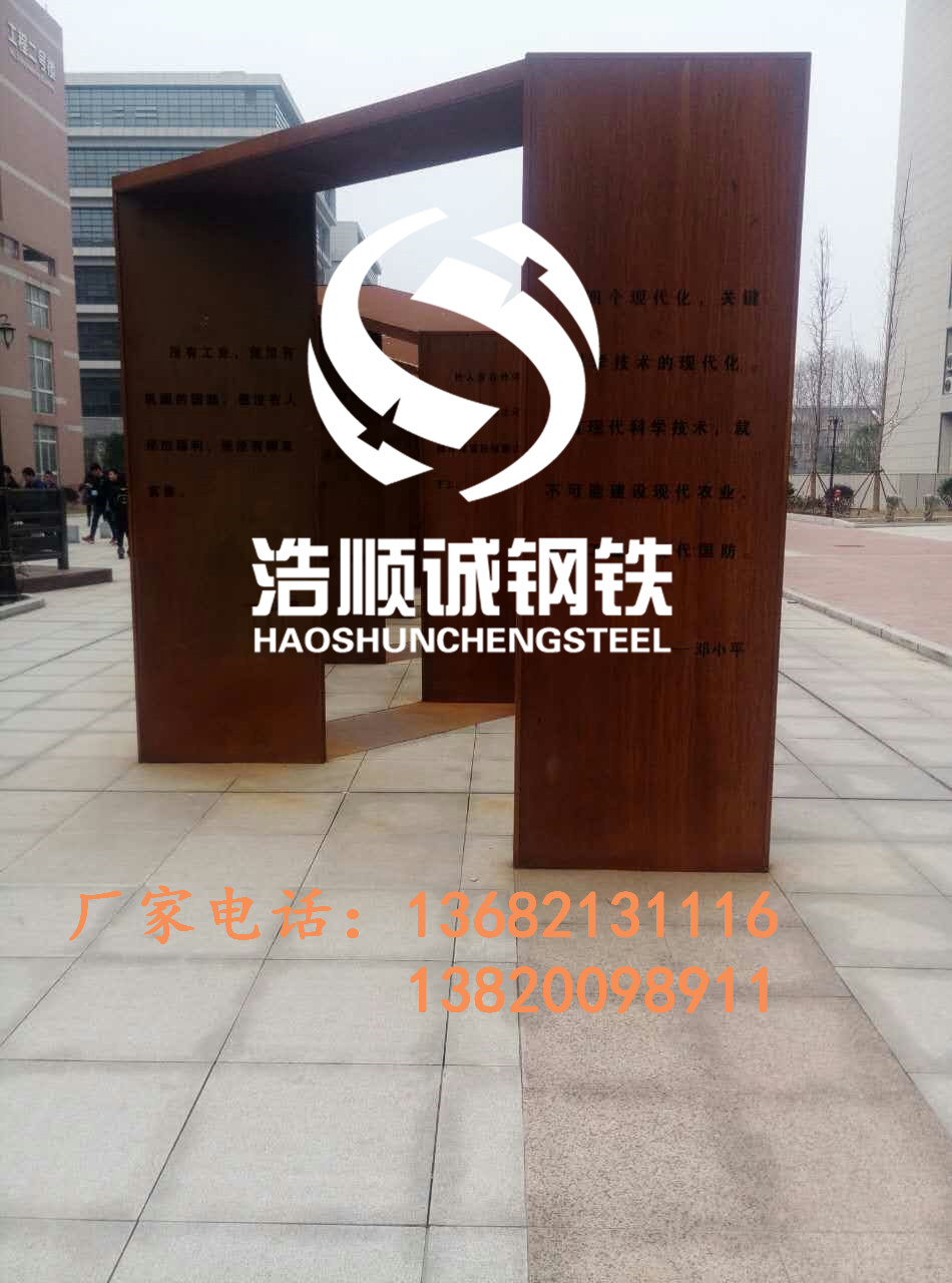 二、锈处理催化计划下,敏捷发生的外表粗糙有手感,使其构筑物更富体积感和质量感,提高视觉效果和感官效果,敏捷提高园林规划的效果,提高经济效益和艺术效益!(这个手感是规划师神往的手感,一般耐候钢天然生锈要1-2年才有如此效果,2-3个月只要细微黄锈色,没有手感,简略掉锈!)