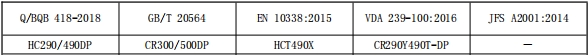 冷轧:DC03-DC06、260LA-550LA、DP450-DP1180、280VK、170P1-250P1等。