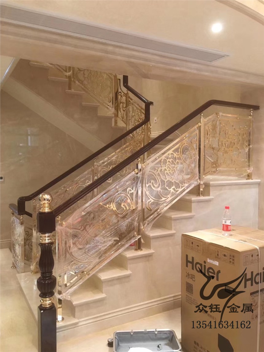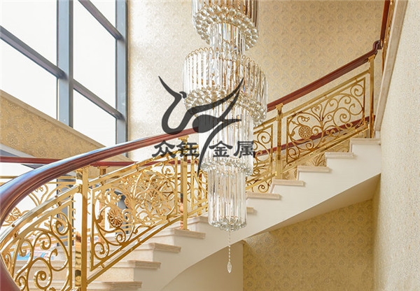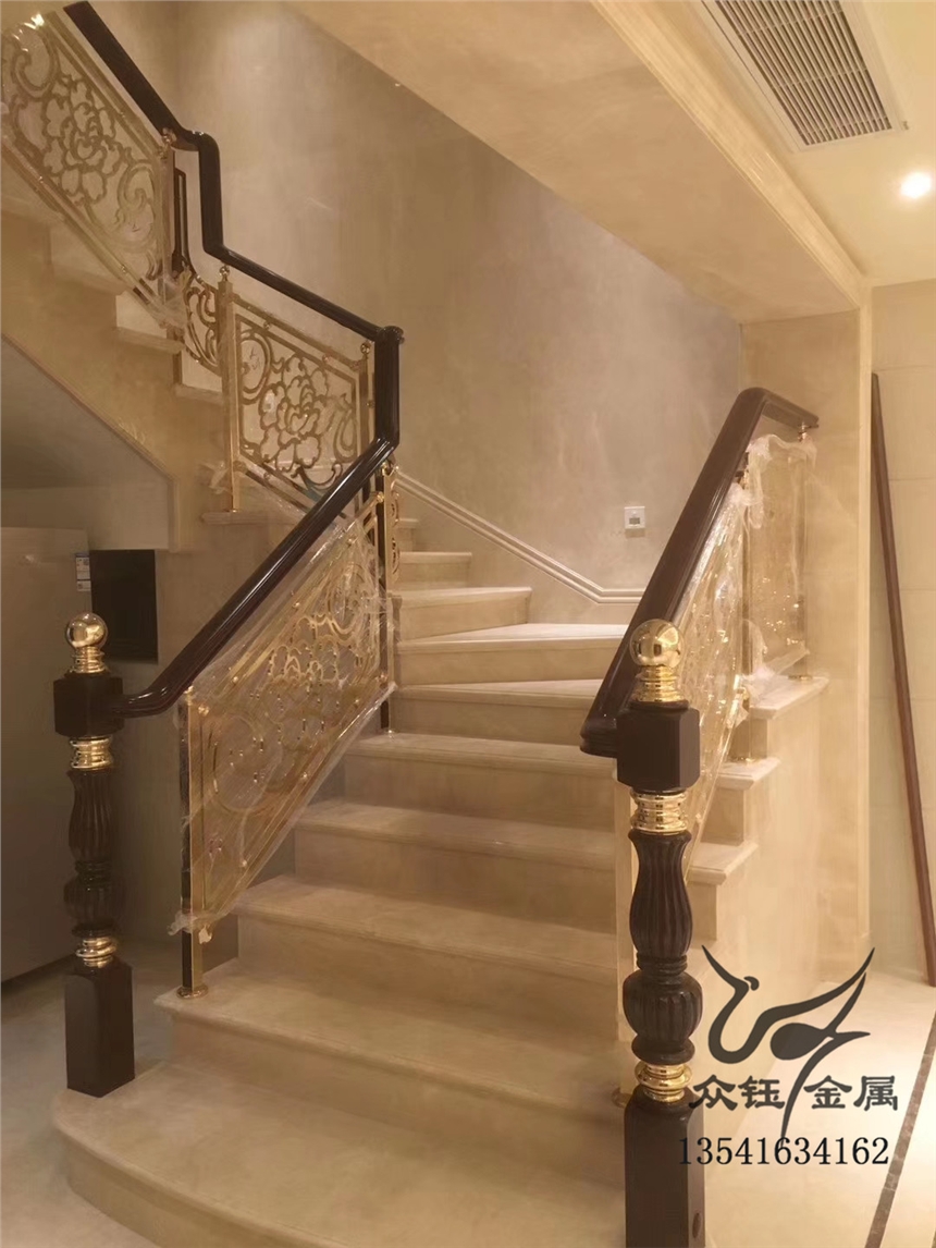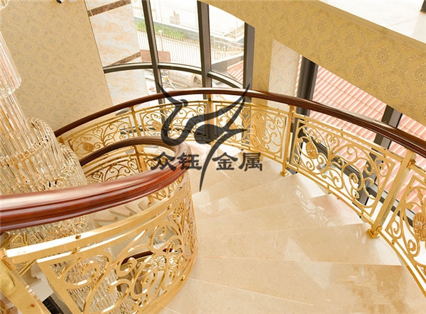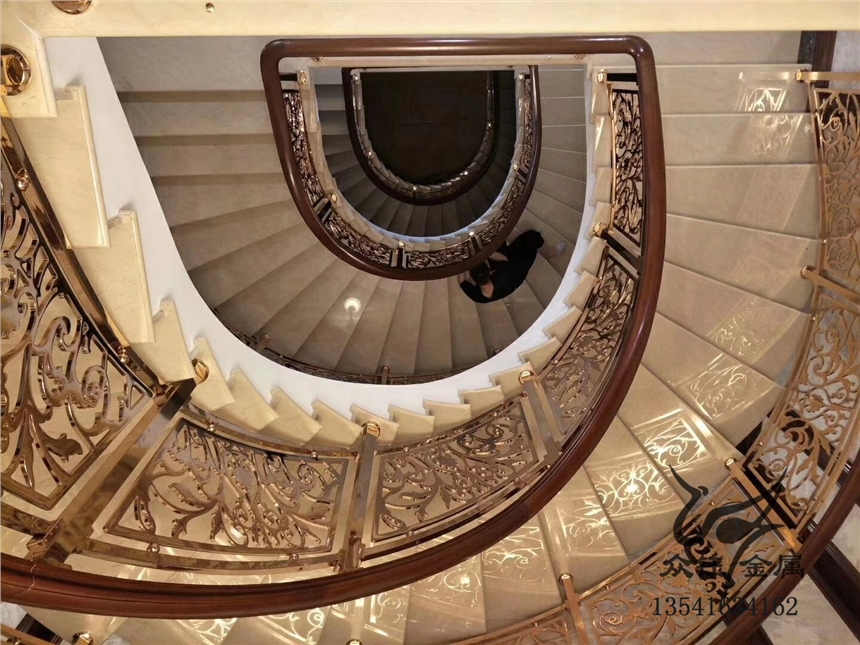 酒店纯铜艺术楼梯护栏制作 豪华铜铝雕花旋转护栏超美
