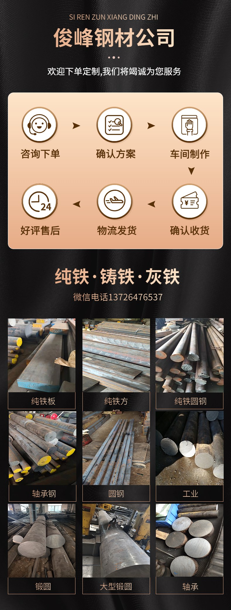 俊峰钢材QT500-7球墨铸铁圆钢~钢板~大型方铁··铸铁是含碳量大于2.11%(一般为2.5~4%)的铁碳合金。它是以铁、碳、硅为主要组成元素并比碳钢含有较多的锰、硫、磷等杂质的多元合金。有时为了进步铸铁的机械性能或物理、化学性能,还可加进一定量的合金元素,得到合金铸铁。