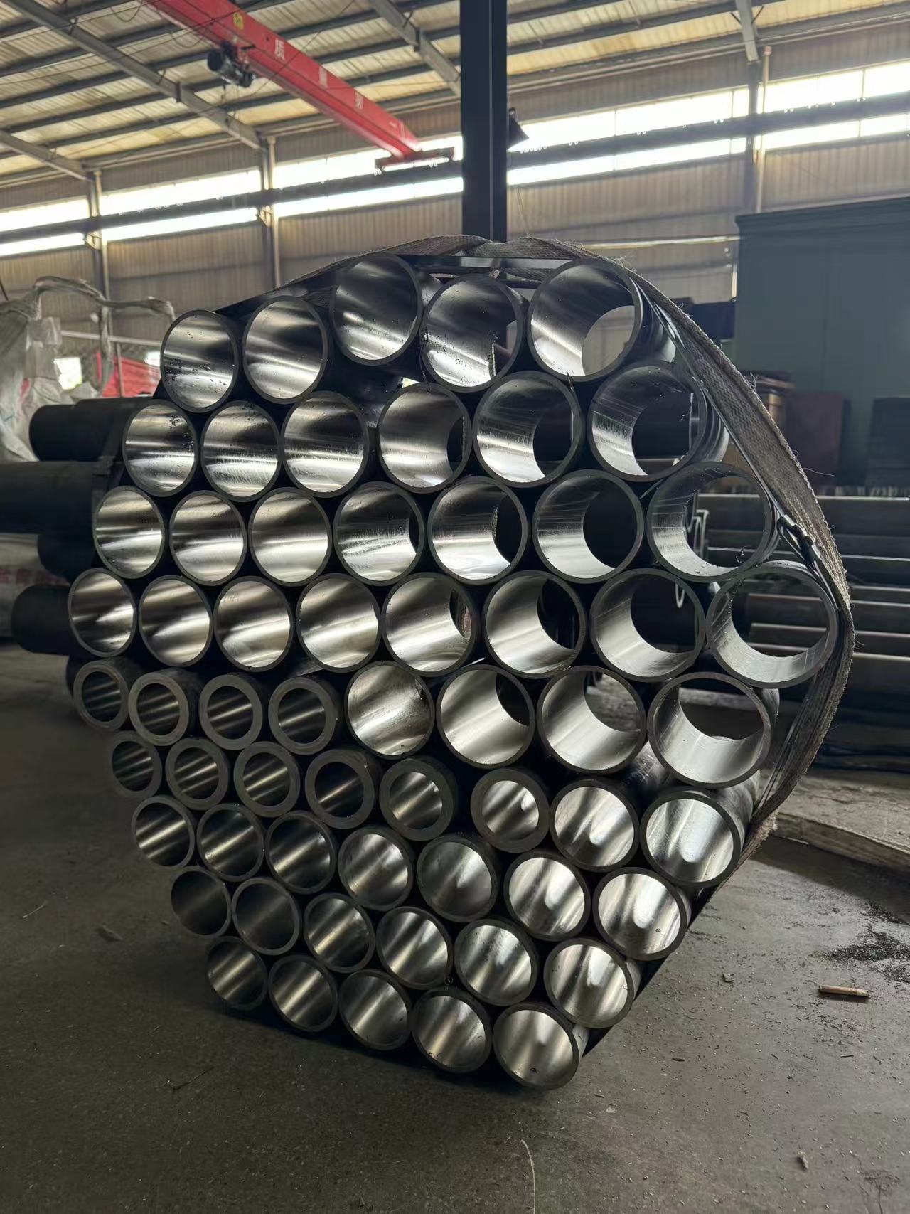 目前生产品种规格为:内径直径20mm—1000mm,壁厚为2mm—150mm。技术条件为:内孔精度H5—H8,内孔粗糙度Ra≤0.63um,直线度≤0.3mm/m。钢号是20#—45#、16Mn、304不锈钢、316L不锈钢、27SiMn及部分低合金钢,标准GB8713-88。规格为20-1000*2-150mm,长度为2-12M的各种类型绗磨管
