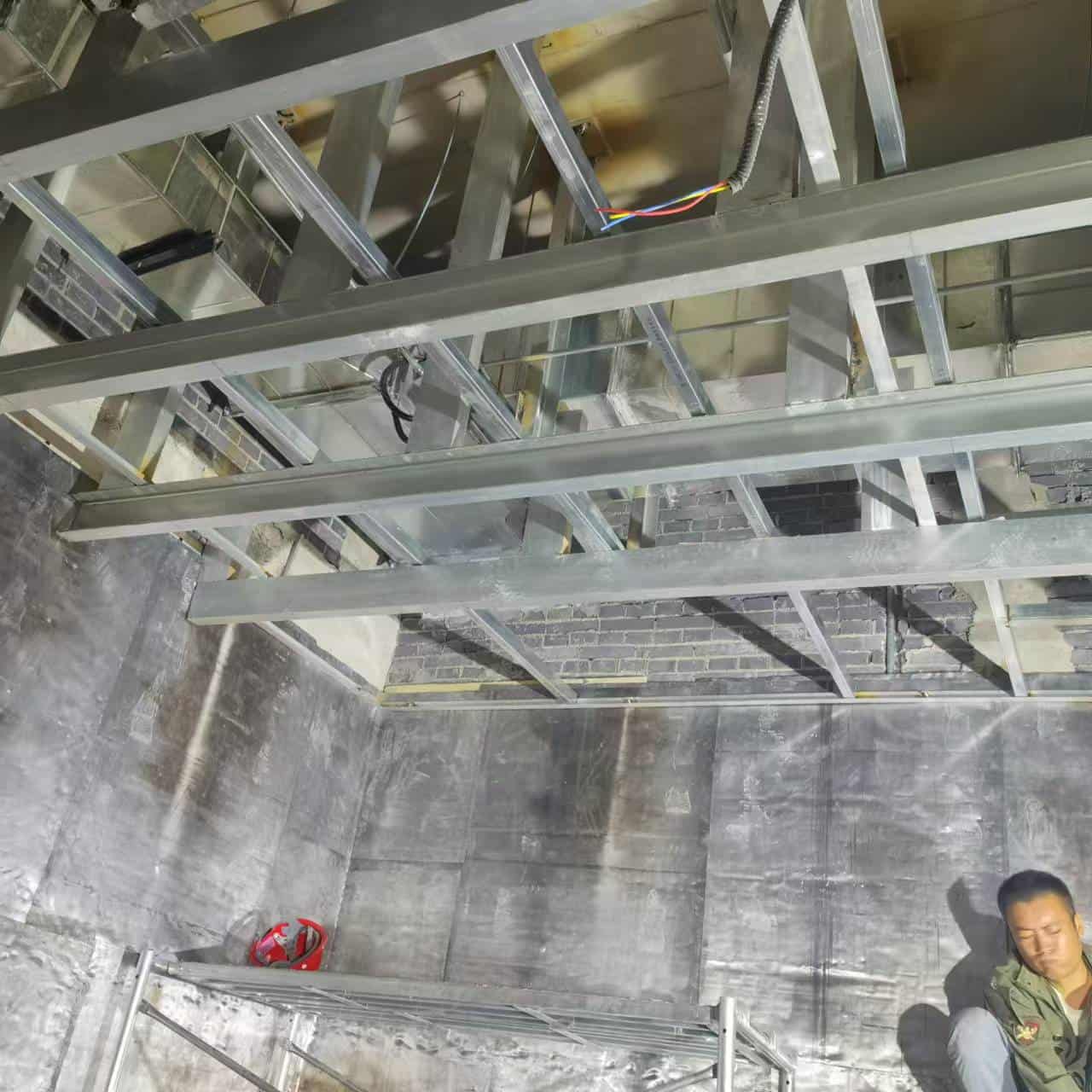 根据我方施工图和现场实际情况在各机房弹水平线作为控制线,并以次根据图纸弹出棚面和地面水平控制线。