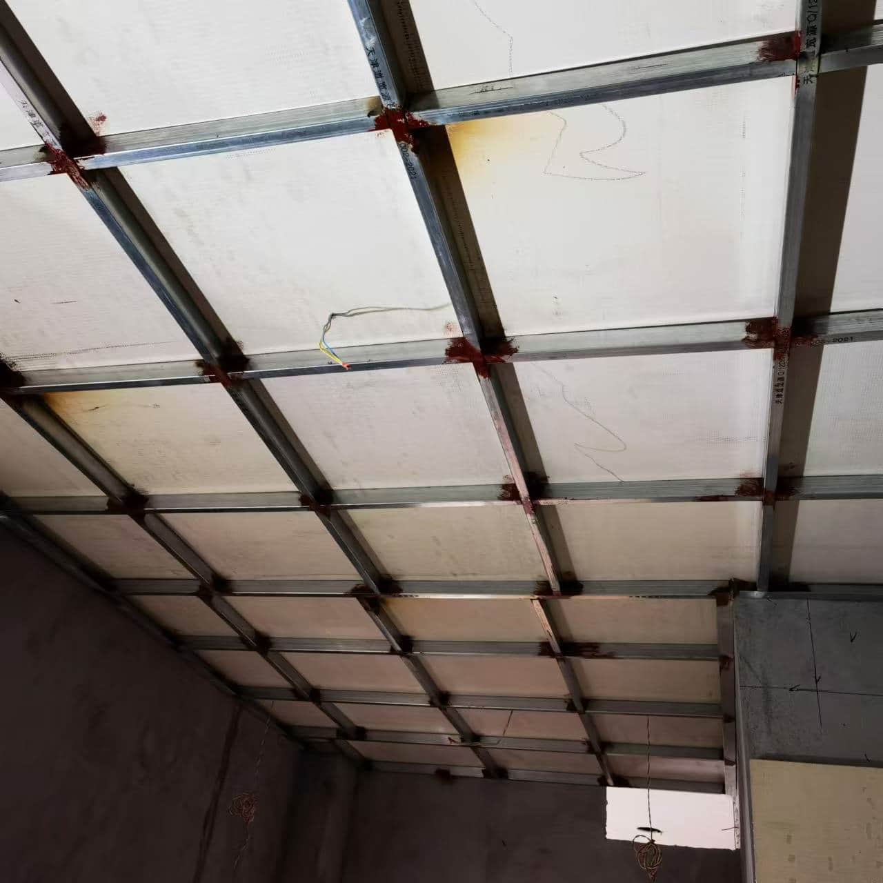 根据我方施工图和现场实际情况在各机房弹水平线作为控制线,并以次根据图纸弹出棚面和地面水平控制线。