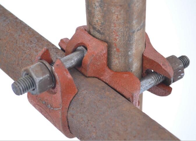 3、国标对接扣件:用于两根钢管的对接联结,主要有垂直管横向水平管、斜撑的接长。