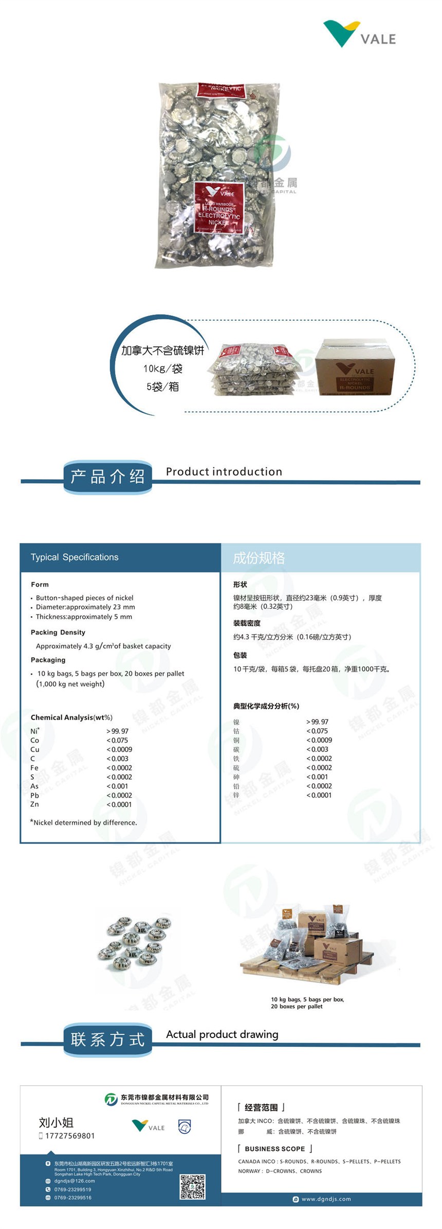 不含硫镍饼(主要用于汽车配件、卫浴、连接器、线路板等高品质电镀)