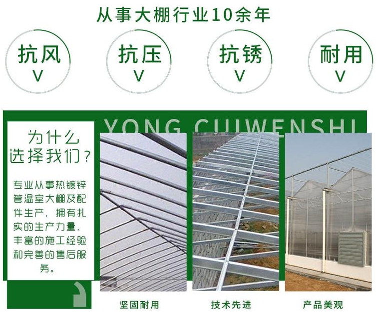 公司生产温室大棚,蔬菜温室大棚,草莓温室大棚,西瓜温室大棚,温室大姜棚,养殖温室大棚(养牛、养猪等)连栋温室大棚,钢架温室大棚,包塑温室大棚,玻璃温室、阳光板温室,薄膜连栋温室,日光温室,春秋大棚,椭圆管大棚。及各种齐全的温室大棚配件