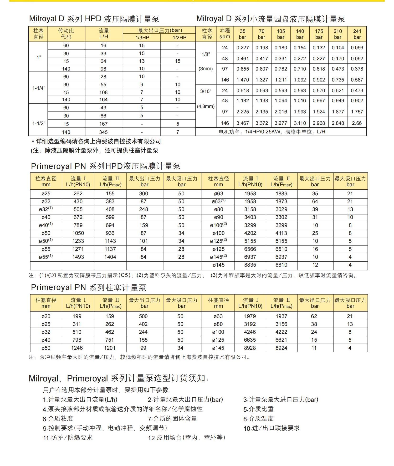 进口多头泵PL149Q100H10/C5.VV3米顿罗液压隔膜计量泵 功率 | 1.2 | ||