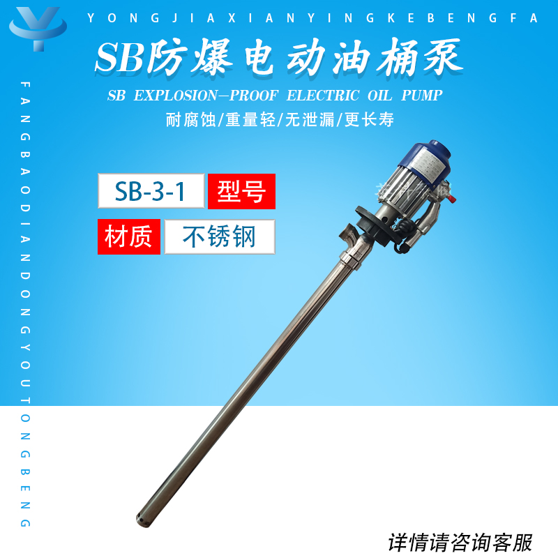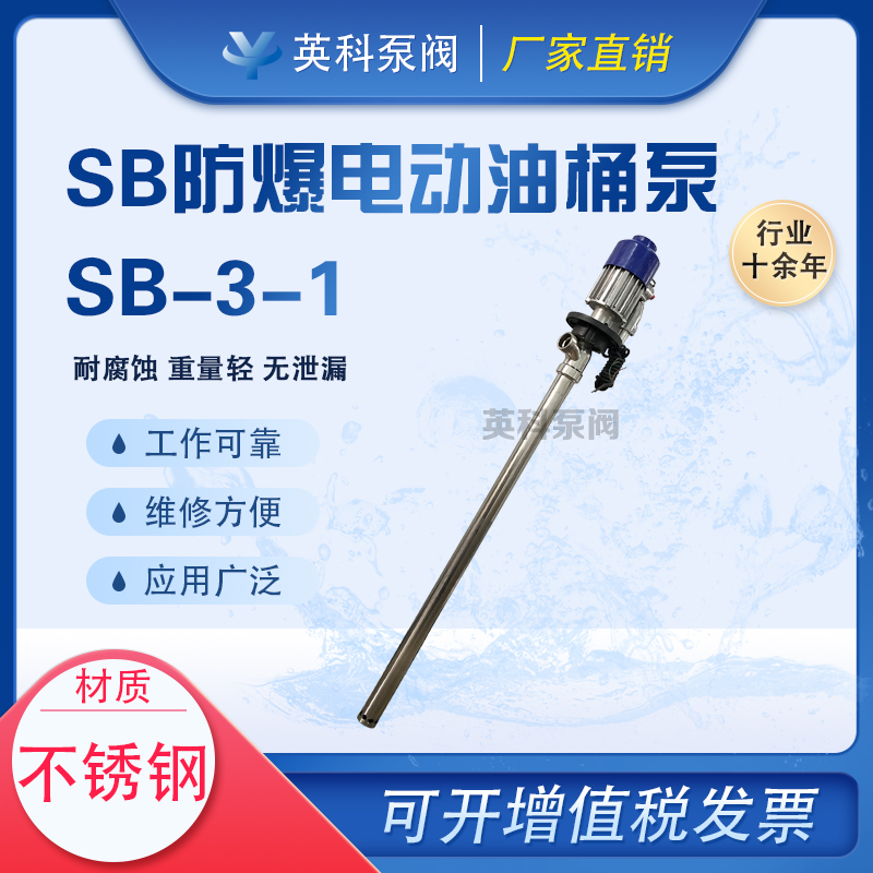 英科牌电动油桶泵SB-3-1防爆插桶泵化工不锈钢抽液泵手提式耐腐蚀