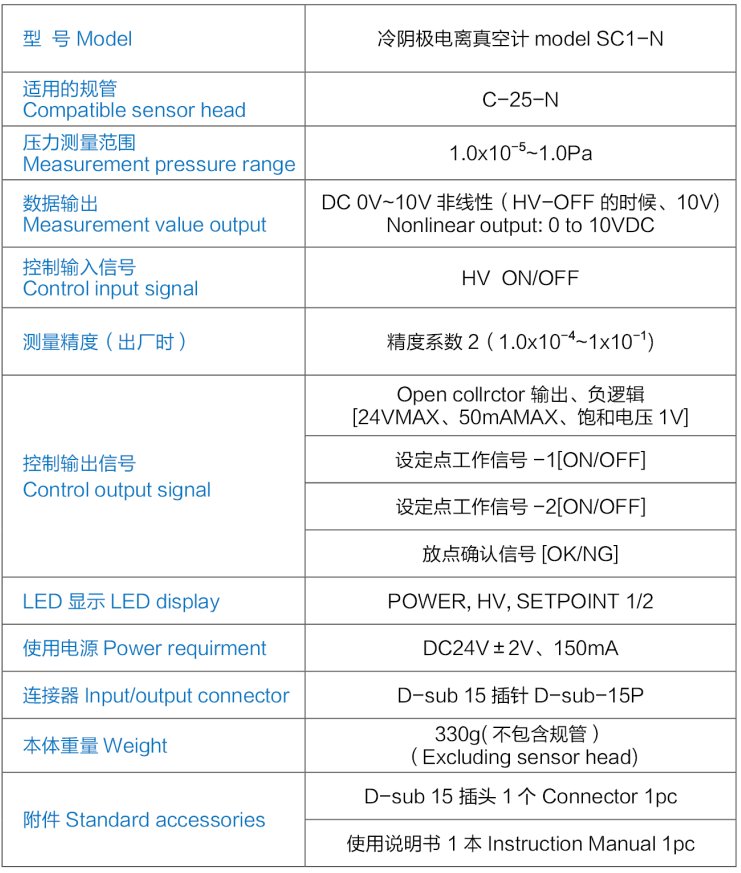 型号 | 冷阴极电离真空计SC1-N |