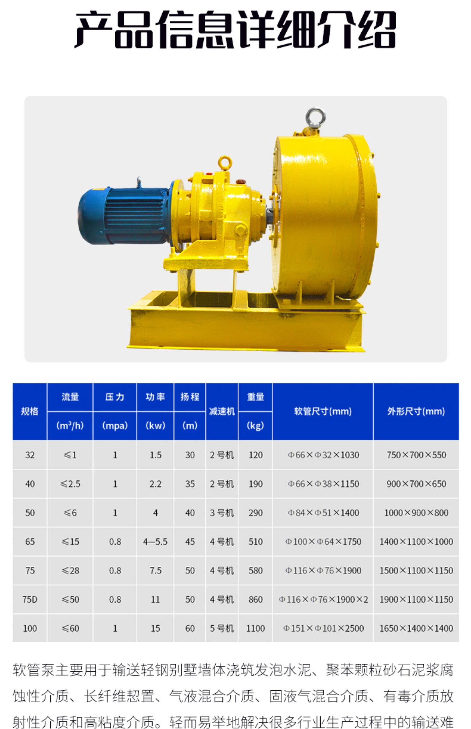 输送介质 | 混凝土发泡水泥污水污泥涂料粪便等 | ||