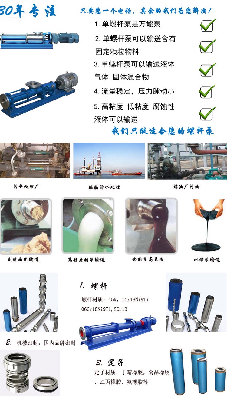 输送介质 | 工业、生活污水处理,油污水处理,输送含有固体颗粒及短纤维的污泥、浊水,油水分离及废气工程,絮凝剂及其化学制剂的计量添加等; | ||