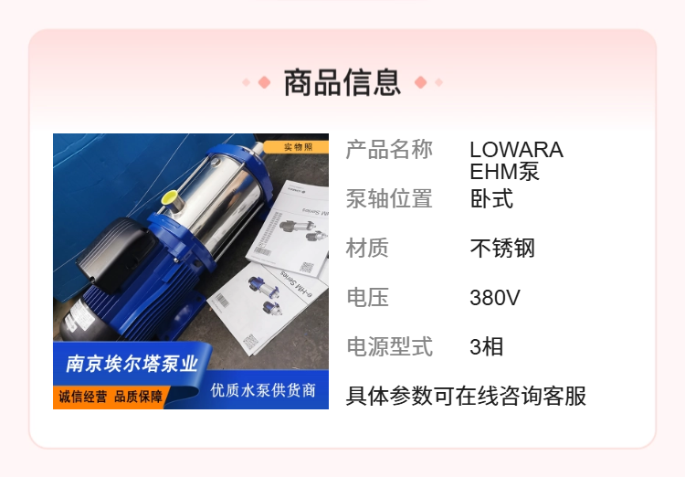 赛莱默不锈钢材质 LOWARA罗瓦拉 1.5KW泵CEA210/4-V 是否支持加工定制 | 否 | ||