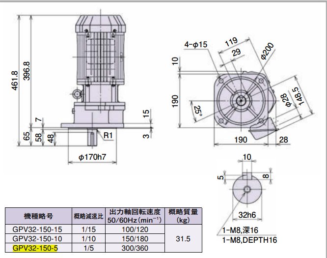 GPV32-150-5 200V/50HZ HITACHI 日立减速电机原装进口纳期短 品牌 | HITACHI 日立 | ||