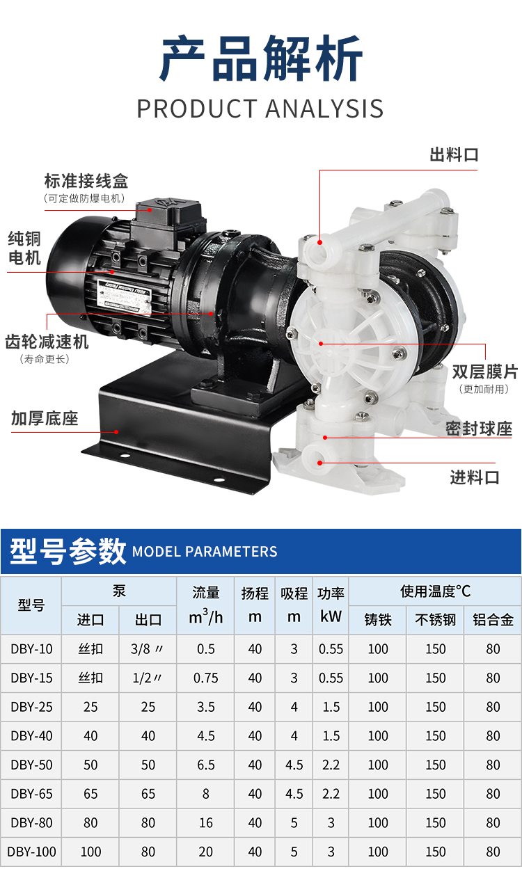 DBY电动隔膜泵 不锈钢耐酸碱四氟15/25/40/50自吸电机驱动隔膜 泵 是否支持加工定制 | 是 | ||