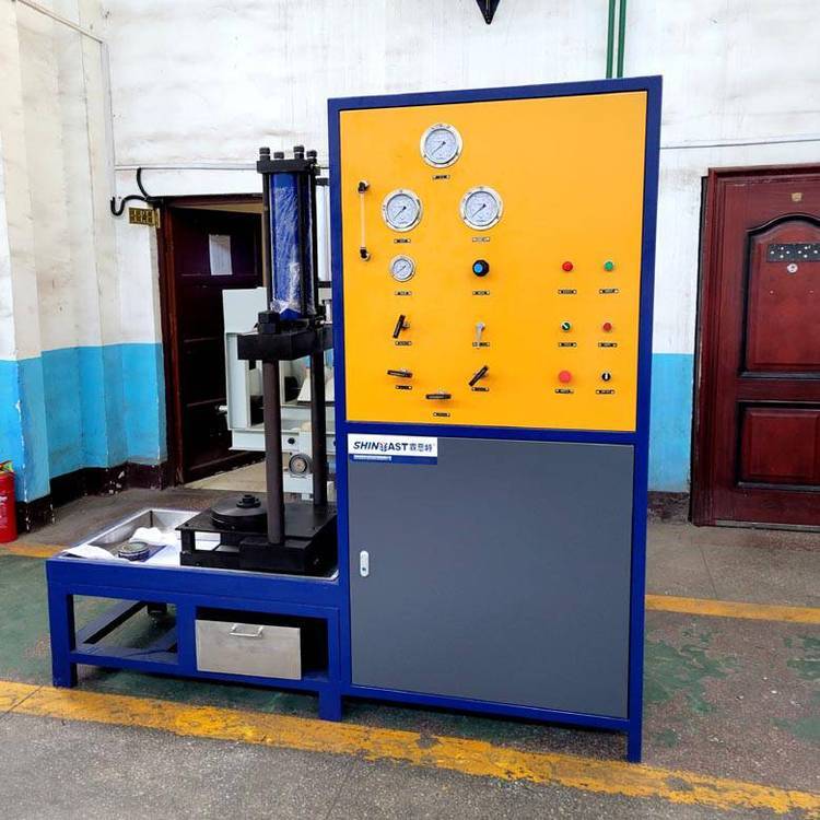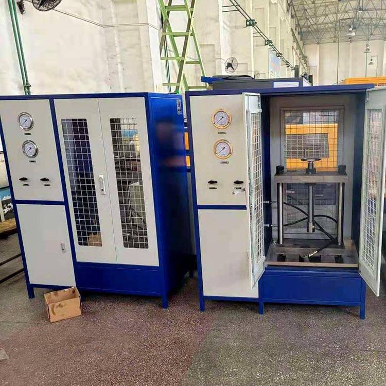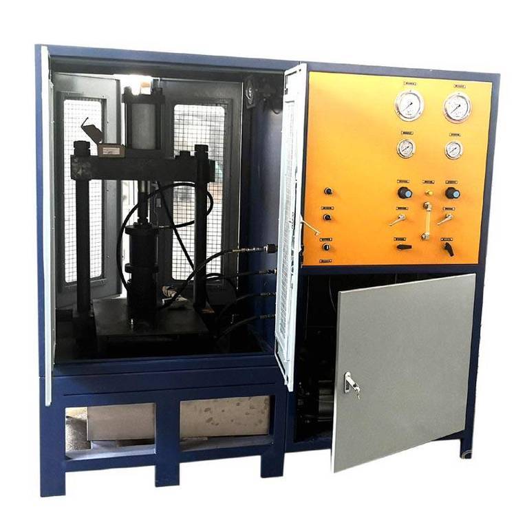 设备为平卧顶压式,左右工作台各有密封盲板密封,左侧工作台设有进退功能机构,由液压油缸直接驱动实现,使阀门密封面受力均匀,压紧可靠。右工作台固定不动,双向进水,双向排水,密封盘上设有排水、排气阀门,方便进行气密封试验的检查和对阀门密封面密封情况的观察,具有性能良好,结构简单紧凑等特点。