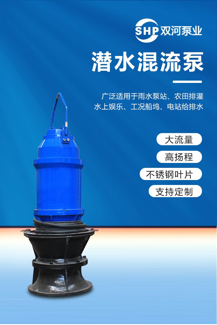 潜水混流泵定做不锈钢叶轮雪橇式井筒式安装