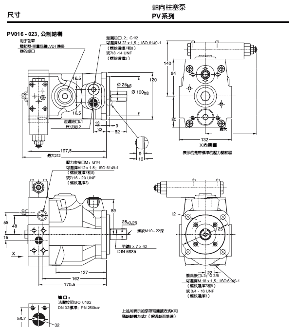 派克(Parker)PV系列泵文件资料,技术参数,连接方式,调节控制,结构图,安装尺寸