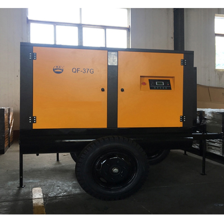 螺杆空压机型号:QF-45G,驱动方式:直联,电机功率:45千瓦,排气量:8立方每分钟,工作压力:0.8MPa,外形尺寸:1750*1000*1450,重量:880公斤,分为普通工频、永磁变频两种,又分为固定式、移动式两种,固定式用于工厂车间统一供气、喷砂房防腐喷砂等,移动式分为两轮移动、四轮移动,常用于户外防腐工程钢结构、管道、石油储罐喷砂除锈。