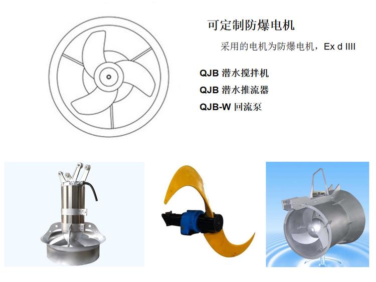 QJB潜水搅拌机由叶轮、潜水电机、安装提升导杆、角度转向装置等组成。