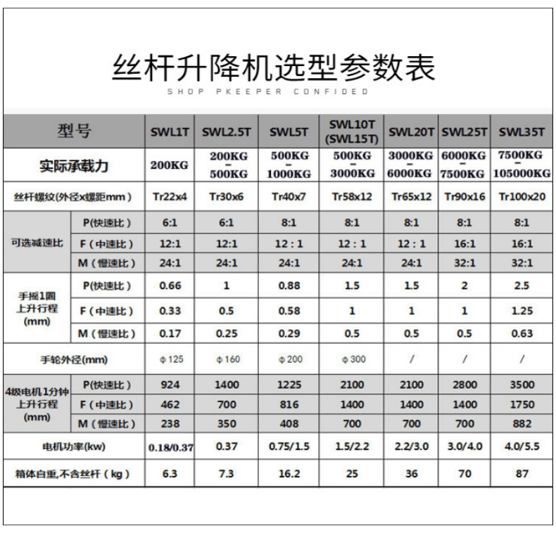 规格 | SWL1T-SWL100T | ||