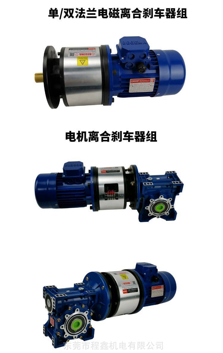 鑫3.7KW频繁制动刹 万鑫齿轮减速机不需要联轴器与其他连接元件,安装简单方便、节省空间成。双法兰电磁离合刹车器组主要用途:起动、刹车、高频运转、寸动定位、过载保护等。