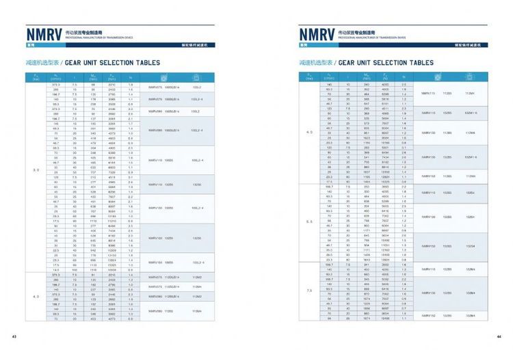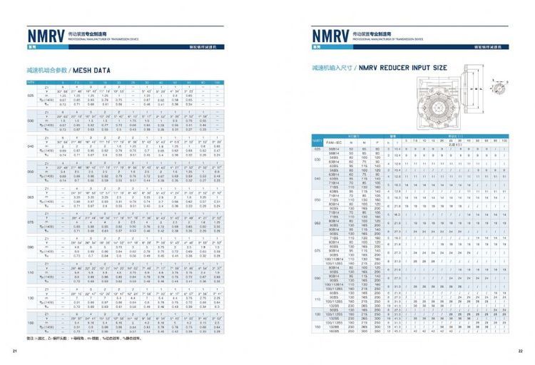 NMRV25、NMRV30、NMRV40、NMRV50、NMRV63、NMRV75、NMRV90、NMRV110、NMRV130、NMRV150 涡轮蜗杆减速机速比: (二)NMRV系列NMRV-25-7.5 NMRV25-10 NMRV25-15 NMRV25-20 NMRV25-25 NMRV25-30 NMRV25-40 NMRV25-50 NMRV25-60 NMRV25-80NMRV30-7.5 NMRV30-10 NMRV30-15 NMRV30-20 NMRV30-25 NMRV30-30 NMRV30-40 NMRV30-50 NMRV30-60 NMRV30-70 NMRV30-80 NMRV30-90 NMRV30-100NMEV40-7.5 NMRV40-10 NMRV40-20 NMRV40-25 NMEV40-30 NMRB40-40 NMRV40-50 NMRV40-60 NMRV40-70 NMRV40-80 NMRV40-90 NMRV40-100 NMRB50-7.5 NMRV50-10 NMRV50-15 NMRV50-20 NMRV50-25 NMRV50-30 NMRV50-40 NMRV50-50 NMRV50-60 NMRV50-70 NMRV50-80 NMRV50-90 NMRV50-100 NMRV63-7.5 NMRV63-10 NMRV63-15 NMRV63-20 NMRV63-25 NMRV63-30 NMRV63-40 NMEV63-50 NMRV63-60 NMRV63-70 NMRV63-80 NMRV63-90 NMRV63-100 NMRV75-7.5 NMRV75-10 NMRV75-15 NMRV75-20 NMRV75-25 NMRV75-30 NMRV75-40 NMRV75-50 NMRV75-60 NMRV75-70 NMRV75-80 NMRV75-90 NMRV75-100 NMEV90-7.5 NMRV90-10 NMRV90-15 NMRV90-20 NMRV90-25 NMRV90-30 NMRV90-40 NMRV90-50 NMRV90-60 NMRV90-70 NMRV90-80 NMRV90-90 NMRV90-100 NMRV110-7.5 NMRV110-10 NMRV110-15?