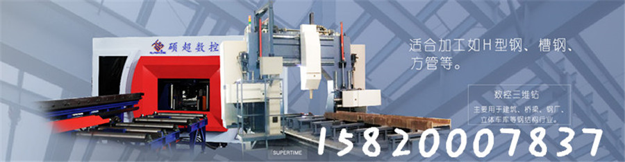 硕超数控为建筑、桥梁、塔桅和网架等行业设计制造的SWZ1000型三维数控钻床,采用三个点位控制数控轴,一个数控检测轴及三个均由变频无级变速的钻削主轴,PLC控制,数控三维钻床具有精度高、操作方便等特点,是钢结构制造业中质量保证的必不可少的高效设备。