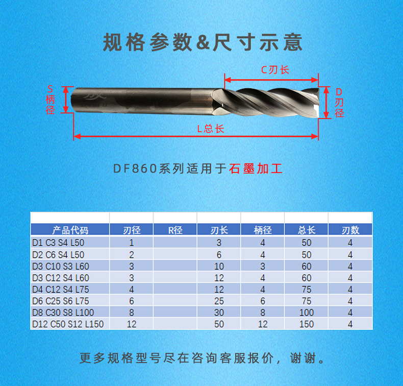 刀父现货4刃超硬金刚石涂层石墨铣刀 2/4/6/8/12mm数控钨钢石墨刀 型号 | DF860-E4 | ||