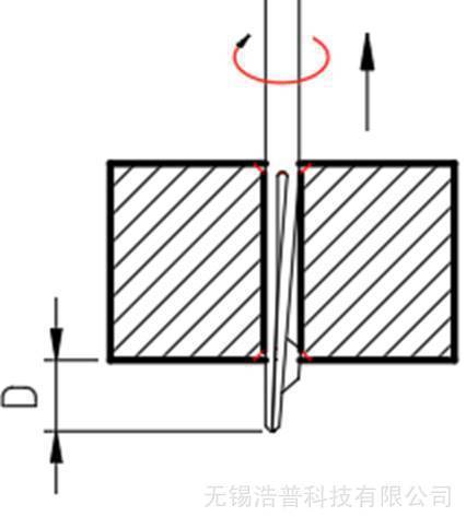 4.反向工进去加工背面毛刺,直至进给到刀杆端面离开孔背面距离为D的位置,随后刀具可快速移出孔内 | ![]() |