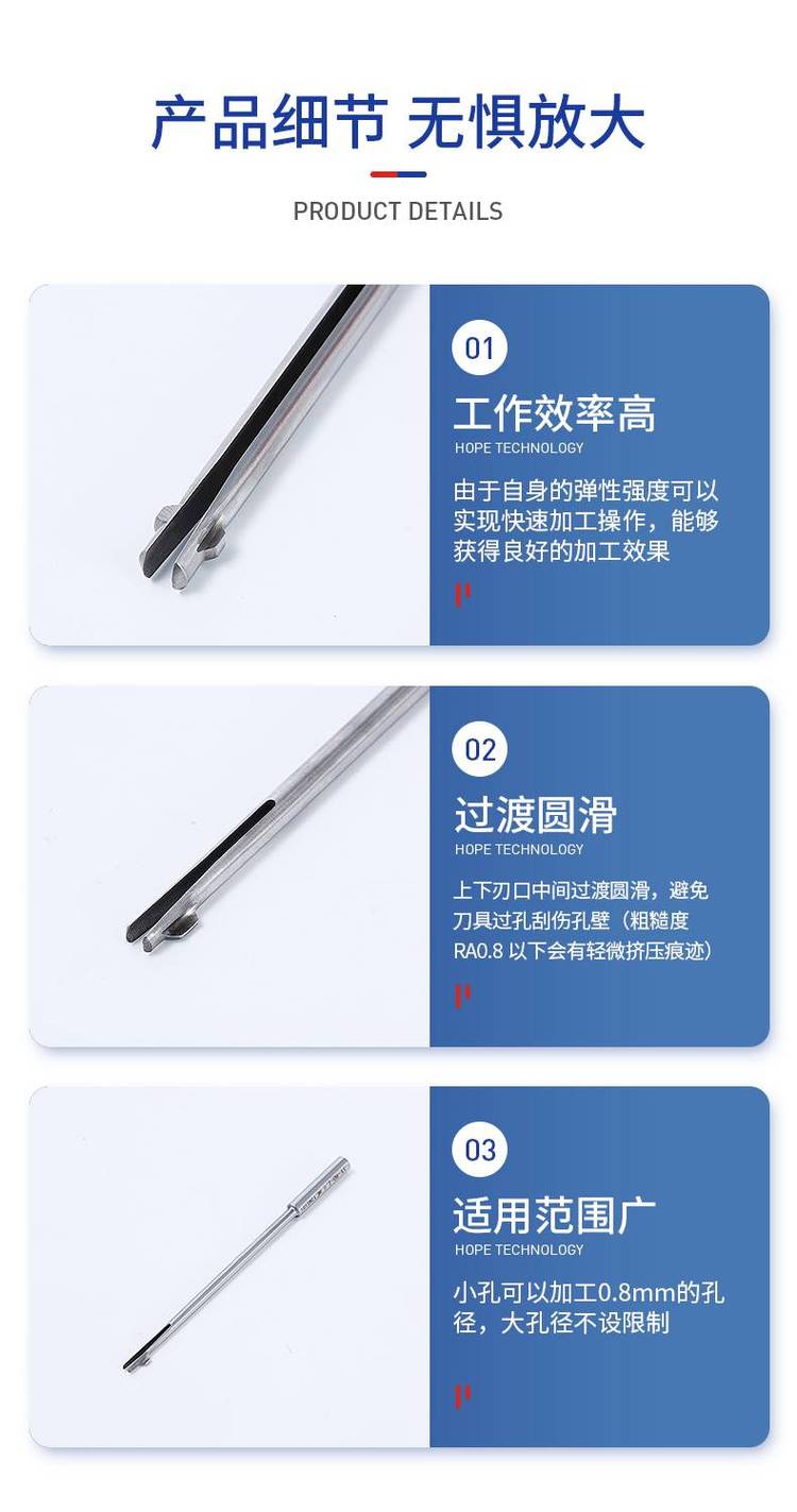 上下刃口中间过渡圆滑,刀具过孔不会刮伤孔壁(粗糙度Ra0.8以下会有轻微痕迹)。