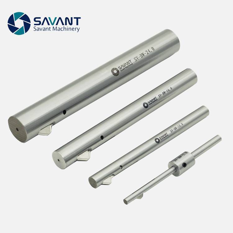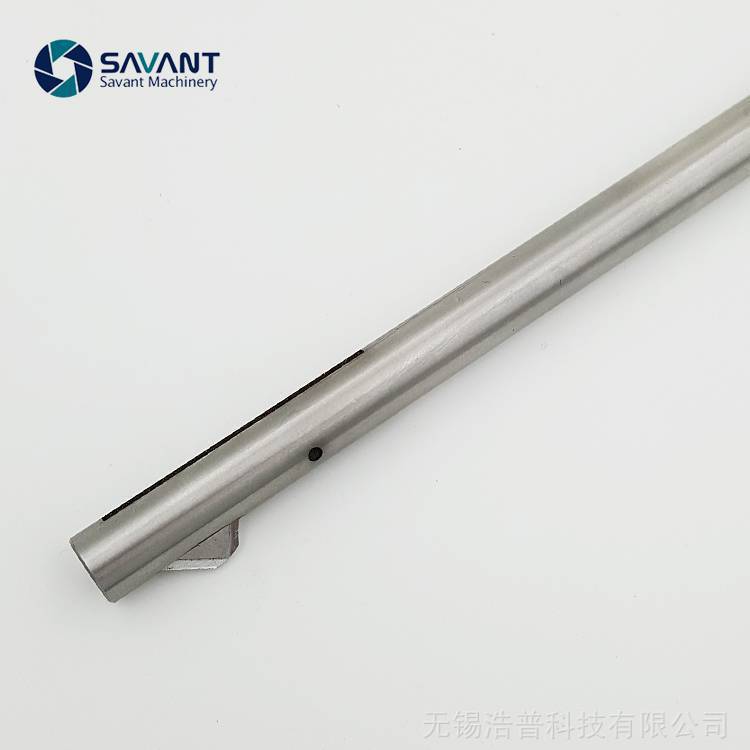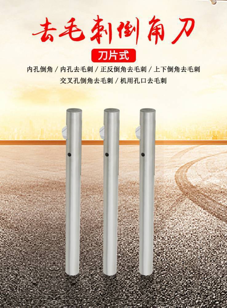 结构介绍:倒角刀由刀杆体,刀片和弹性闭合槽构成;前段为入孔导向体,刀片前端为45度,内端为33度角,槽口为6度角。