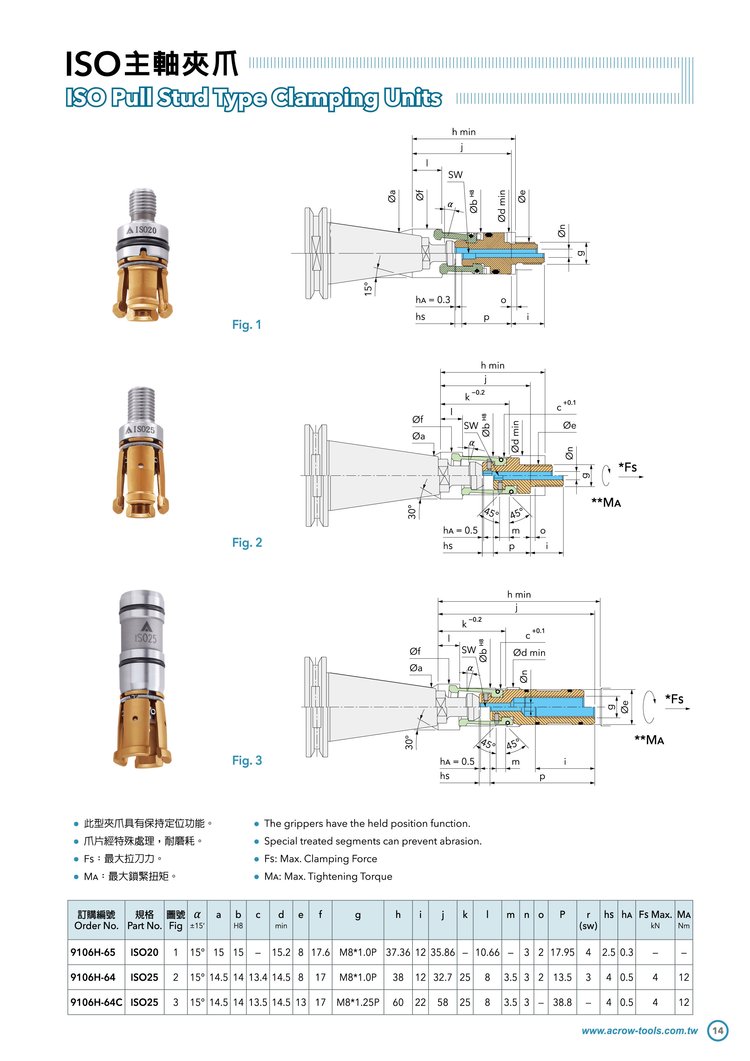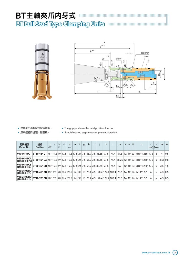 ②采用高强度铬钼合金钢制造,经多重表面硬化处理程序,使拉刀爪夹持稳定、不断裂、不变形,耐磨耗;