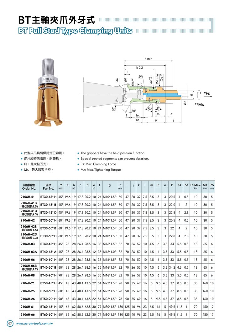 本公司主軸拉刀夾爪種類齊全,其中有多項獲得多項專利,在高速運轉時,各爪片仍能保持定位,不影響主軸之動平衡。已廣獲工具機業界所採用,隨著機器暢銷世界各國。
