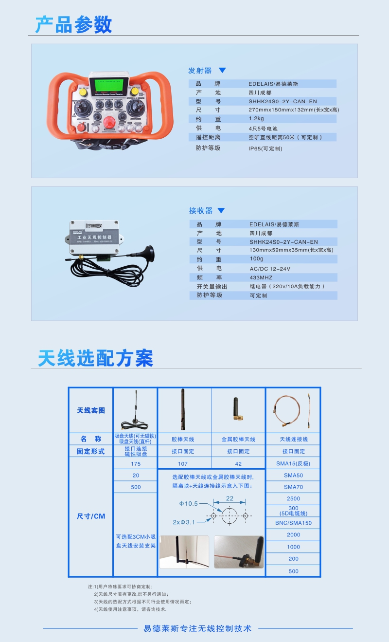 无人驾驶/AGV小车/履带小车工业无线遥控器信号稳定无延时无卡顿 型号SHHK24S0-2Y-CAN-EN