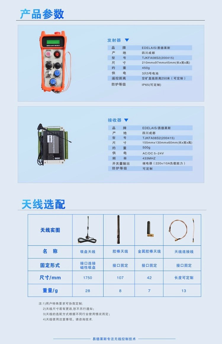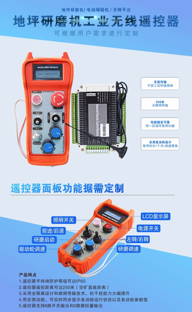 地坪研磨机多功能工业无线遥控器 继电器具有220V/10A的负载能力 品牌易德莱斯