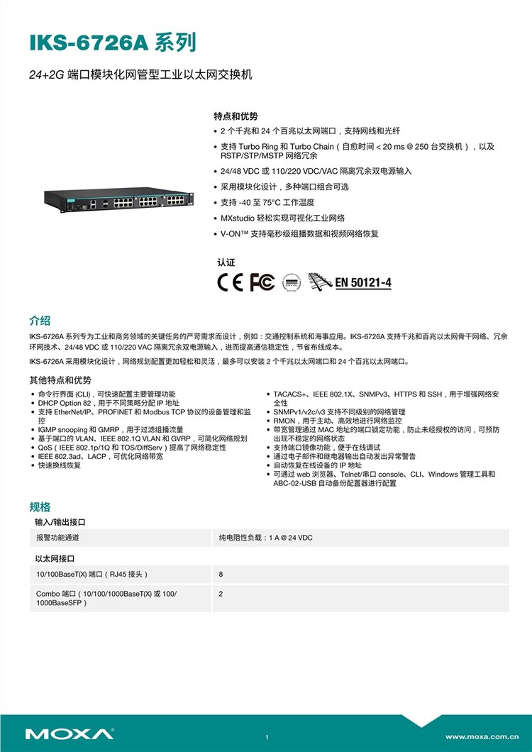 IKS-6726A-2GTXSFP-48-48-T 摩莎MOXA交换机全新原装正品