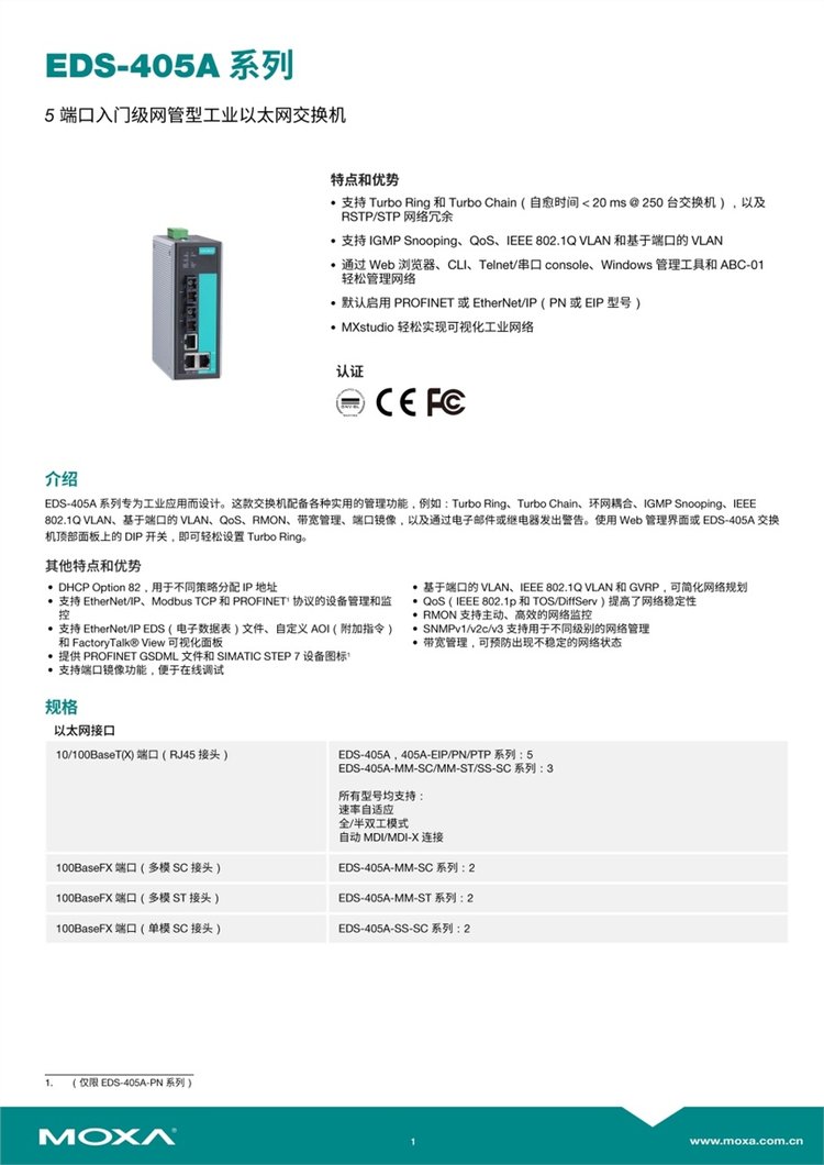 EDS-405A-PN-T 摩莎MOXA交换机全新原装正品