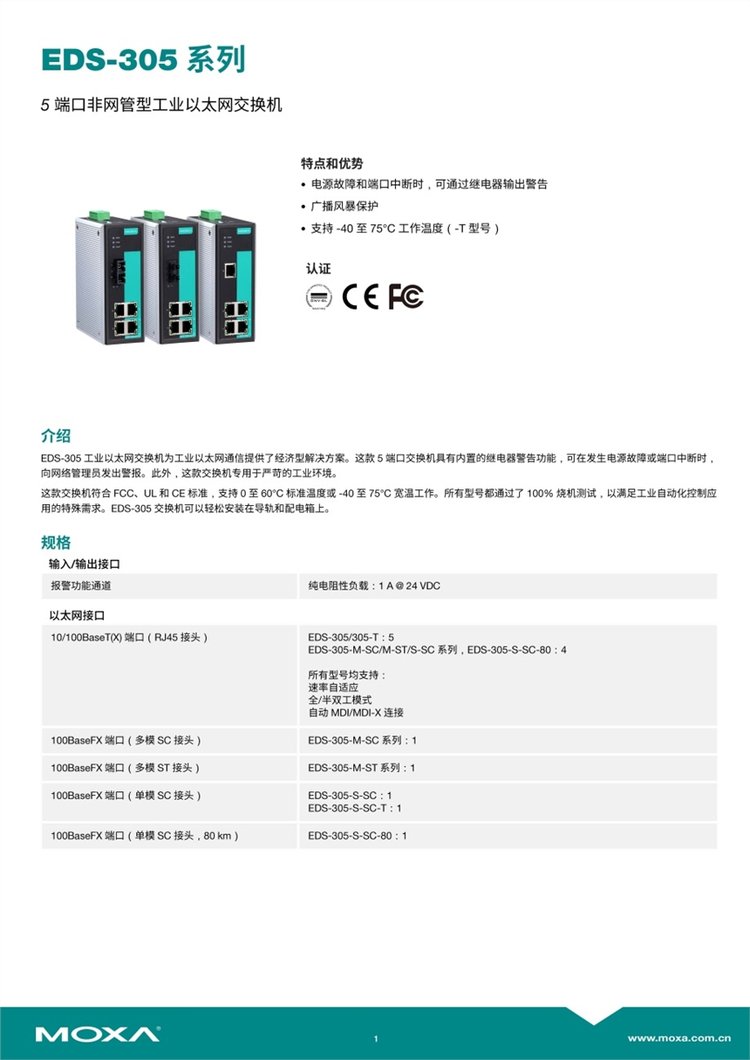 EDS-305-M-ST 摩莎MOXA交换机全新原装正品