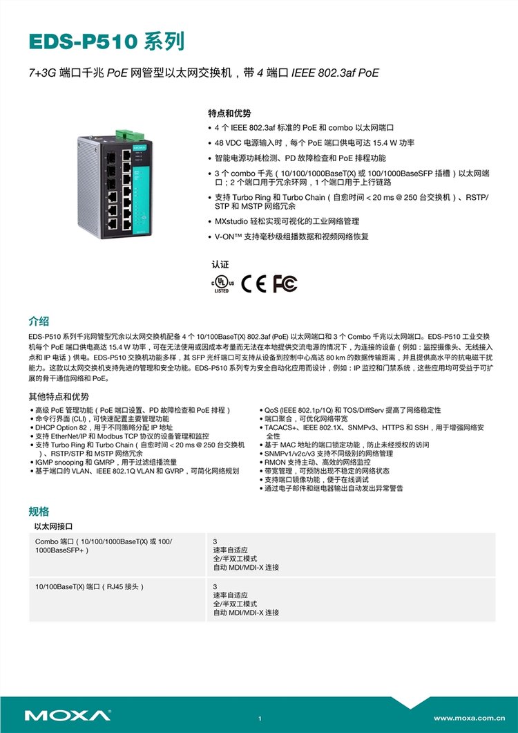 EDS-P510-T 摩莎MOXA交换机全新原装正品