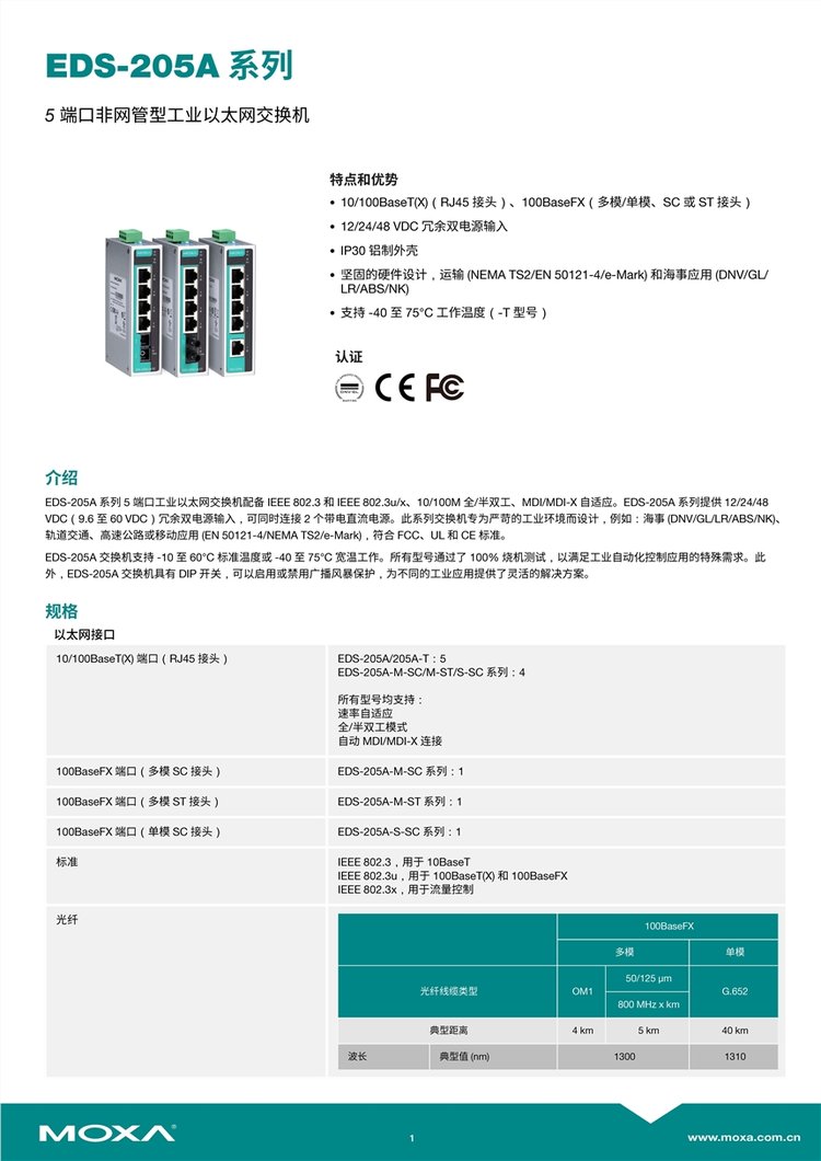 EDS-205A-M-ST摩莎MOXA交换机全新原装正品