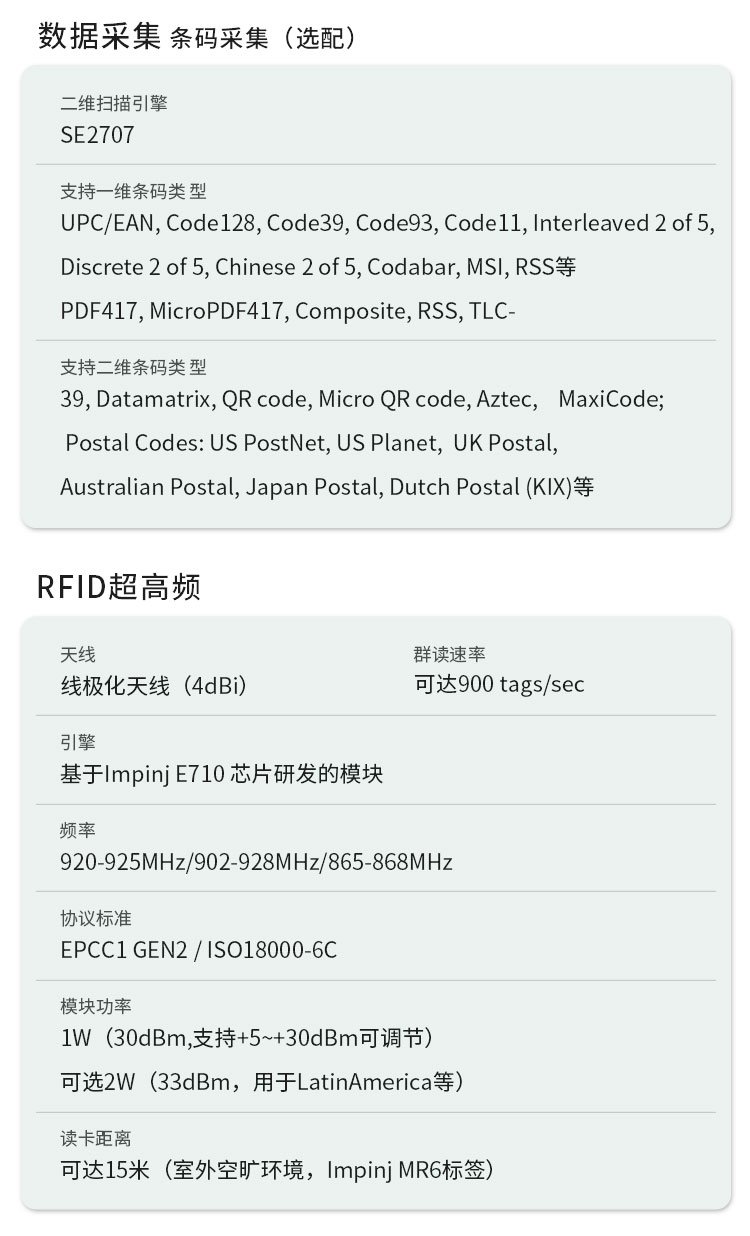 RFID频率 | 920-925MHz/902-928MHz/865-868MHz | ||