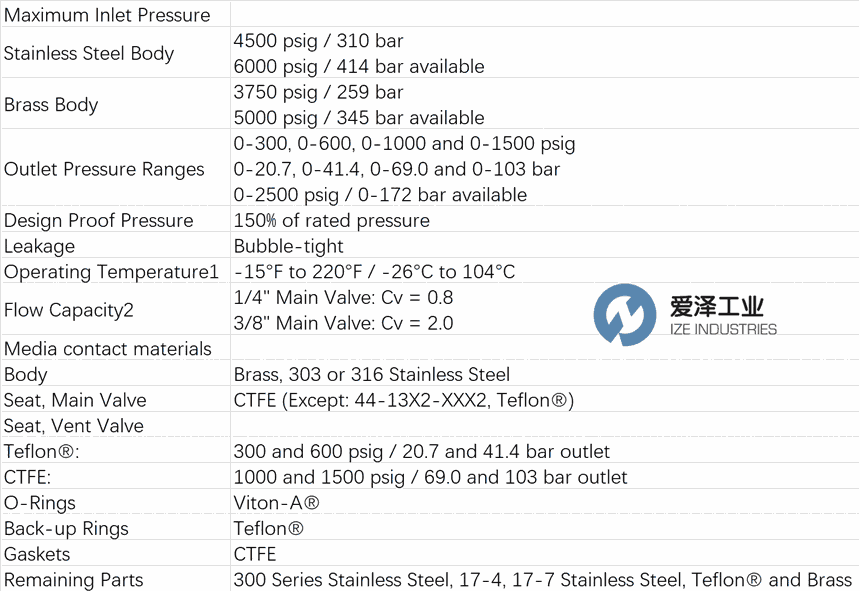 44-1300 系列是一种高压、高流量减压阀,提供排放和平衡阀芯设计。 44-1300 系列提供 Cv = 0.8 和 2.0。提供气室负载和空压负载型号。非常适用于商业潜水呼吸空气、特殊气体混合调节硬质套装潜水以及高压管拖车气体减压。