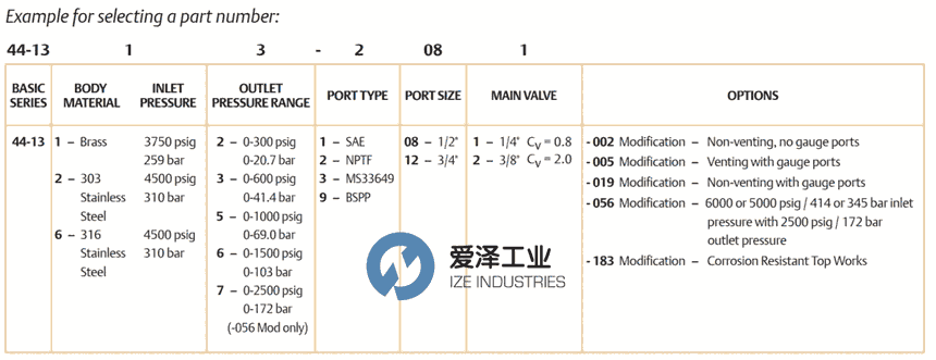 TESCOM调节器44-1300系列选型