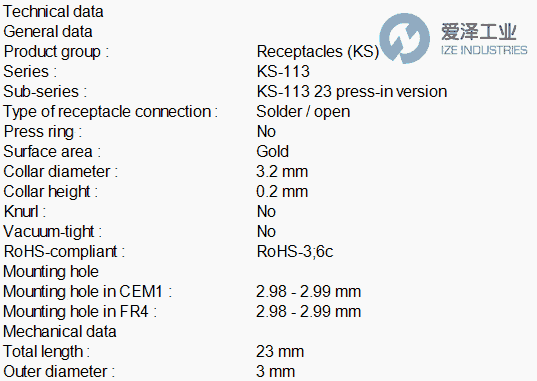 INGUN探针插座KS-113 23技术参数