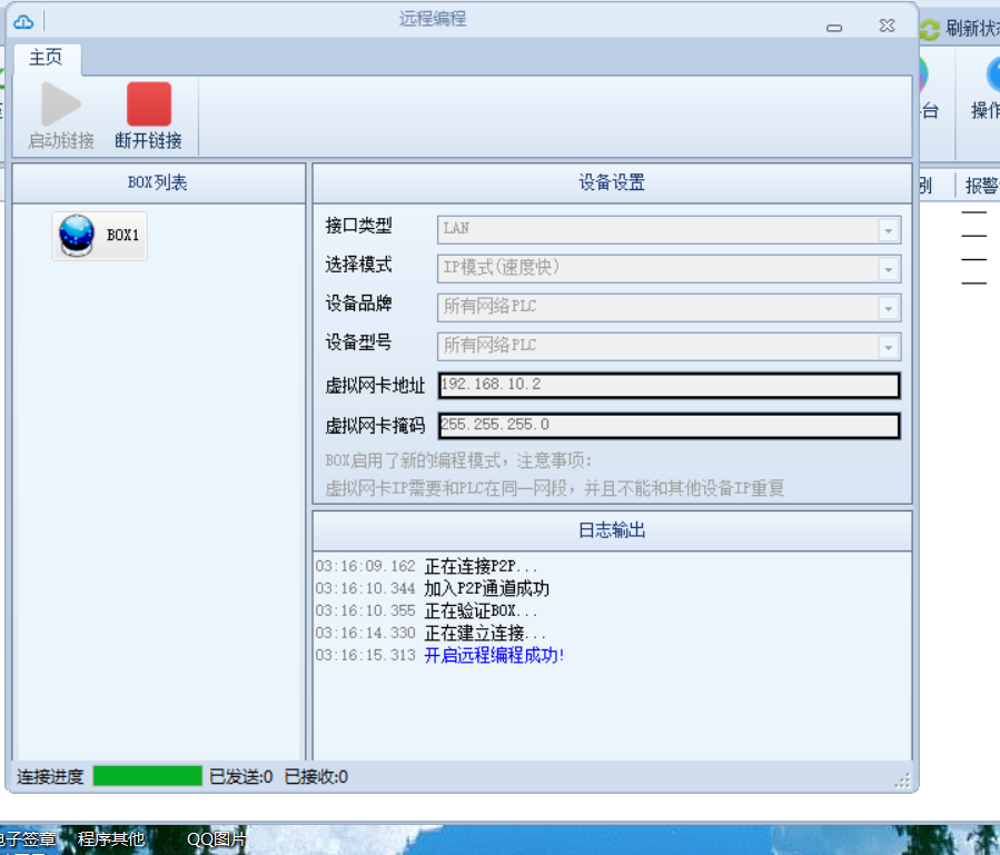 (蓝色提示 “开启远程编程成功”)