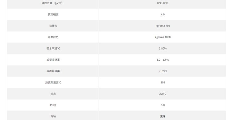 体积密度(g/cm3) | 0.93-0.96 | ||